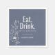 These elegant formal eat drink we're married wedding napkins are perfect for a rustic wedding. The design features a watercolor penciled flower bouquet paired with an elegant font in a blue background.