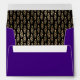 Elegant all-purpose envelope done in rich purple , with graphics of a gold ornamental swirl, on the front and on the back flap. Inside the envelope there is graphics of a gold on black feather pattern. Personalise the return address to suit your needs. Great for special occasion invites, thank you cards and announcements.
