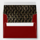 Elegant all-purpose envelope done in deep red, with graphics of a gold ornamental swirl, on the front and on the back flap. Inside the envelope there is graphics of a gold on black feather pattern. Personalise the return address to suit your needs. Great for special occasion invites, thank you cards and announcements.
