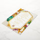 Beautifully elegant formal destination wedding invitation includes a background of lush tropical florals and botanicals around a bright gold geometric frame. Customise the text and section placements to your desired look. This design features a QR Code Mock-up that can delete and replace with your own or delete and replace with your wedding location complete address or the wedding website address.