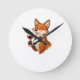 Elegant Fox with Wine Glass Round Clock