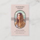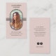 These elegant business cards feature a rounded black frame surrounding your choice of your own photo, with matching geometric lines and modern text on a soft, blush pink background. This stylish yet professional design is perfect for photographers, models, agents, or anyone who prefers a photo on their business cards. You can add your social media info to the back.