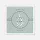 These elegant wedding napkins feature a round dark blue grey frame surrounding your names, with matching geometric lines and modern text on a sea glass coloured background. A minimalist and stylish design.
