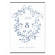 Classic French victorian blue floral crest table number. For more advanced customisation of this design, please click the DESIGN TOOL BUTTON above!