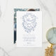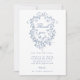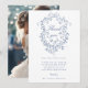 Elegant French Blue Floral Crest Wedding Photo Thank You Card