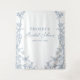 Elegant French Blue Floral Frame Bridal Backdrop Tapestry