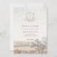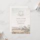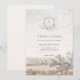Elegant French country toile wedding invitation featuring a delicate floral monogram and soft ivory landscape illustration. This timeless design is perfect for rustic, garden, countryside or vintage style weddings. Fully customizable for names, date, time and venue details. Coordinates beautifully with matching save the date, welcome sign and wedding stationery.