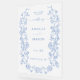 Elegant French Dusty Blue Vintage Wedding Sign. This sign has a soft, elegant style with a muted blue floral frame that feels timeless. Delicate blue floral illustrations along the sides add a touch of coquette whimsy and nature-inspired charm. The layout is clean and organised, using a centred alignment and clear spacing to create a refined look. Has a French toile inspired theme. Overall, the design feels romantic yet understated, perfect for a modern but traditional wedding.