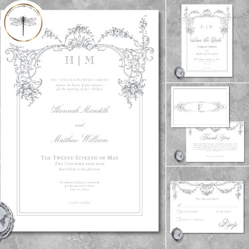 Elegant French Grey Victorian Chinoiserie Wedding RSVP Card