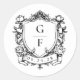 Elegant French Roses Monogram Crest Wedding Classic Round Sticker