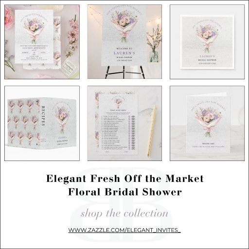 Celebrate the bride-to-be with these “She’s Fresh Off the Market” Bridal Shower Napkins, featuring a soft watercolor bouquet wrapped with a blush ribbon and elegant typography. The romantic floral artwork and neutral, textured background create a charming garden-inspired look that’s perfect for spring and summer bridal showers.
