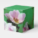Elegant, fresh wild pink rose flowers in green favour box