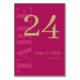 Elegant typography wedding table number cards in fuchsia pink with TABLE in large gold coloured letters down the side of the fuchsia pink table number cards. Add names and wedding date in a tan golden colour.