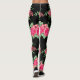 Elegant Fuchsia Pink Rose Flower Black Leggings