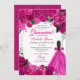 Elegant Fuchsia Pink Silver Floral Quinceanera Inv Invitation
