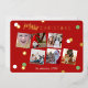 Modern personalised Merry Christmas greeting card with elegant calligraphy font and real gold foil, green & red dots. Upload your favourite photos.