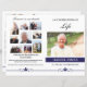 A beautifully elegant funeral program with a blue floral design and blue name band. Features include a large photo on the front, photo collage on the back page with 9 photos and plenty of space for an obituary and order of service (or other text of your choice on the inside pages. All the text is easy to edit and can be customised to create a personal and memorable funeral program for your loved one.