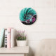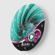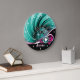 Pretty girly custom clock with a beautiful modern music composition abstract vector illustration with a green / blue disco mirror ball with sparkles on a stylish swirl burst background. Also a play button, speakers and graphic equalizer in pink and green on a black wave at the bottom of the image from www.vectoropenstock.com. A stylish and trendy original gift for teenage girls, women, musicians, dee jays, music lovers & clubbers. If you need any assistance customising your product please contact me through my store and I will be happy to help.