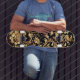 Elegant Fusion: Black and Gold Flowers Flemish Skateboard