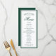 Elevate your wedding reception with this emerald green Elegant & Chic Botanical Crest Monogram Wedding Menu, designed to impress with its timeless sophistication. Featuring a sleek black and white colour palette, this menu showcases your custom monogram encased in a delicate botanical crest at the top, adding a personalised and refined touch to your table settings.