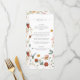 Complete your celebration details with this beautifully coordinated floral menu card, designed to complement a romantic garden-inspired event. Featuring delicate watercolor wildflowers in soft blush, peach, golden yellow, and muted greenery, this elegant menu layout brings a fresh, seasonal touch to your bridal shower, wedding, or special gathering. The refined typography pairs graceful script with clean, classic lettering for a look that feels both timeless and effortlessly modern.