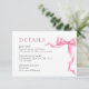 Elegant Gentle Pink Hand Drawn Bow Wedding Details Enclosure Card