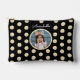 Elevate your style with this elegant black accessory pouch, featuring a chic faux gold circles pattern that pops against the simple black background. Personalise the front with your own photo and name in cute, handwritten white script, making it a truly unique accessory.