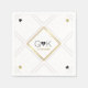 An elegant and chic design of geometric lines in a pattern of squares, on white paper_napkin, for your wedding reception, personalised with your initials (a nice monogram with the image of a heart)