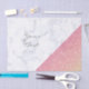 Modern geometric design featuring faux rose gold glitter and white marble colour block.