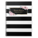 Elegant Girly Black White Stripes Pink Floral Notebook