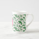 Elegant girly green floral pattern monogram bone china mug