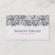 Elegant grey girly floral lace over white floral damasks, customisable business card. Touch of pink. If you need any help customising any of my designs, contact ArtOnWear designer. Free text formatting with live help available by request.