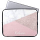 Elegant girly rose gold glitter white marble pink laptop sleeve