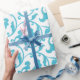 Elegant girly teal blue floral pattern monogram wrapping paper
