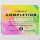 Elegant Glam Iradiscent Certificate of Completion design. If you want to change the font style, colour or text placement, simply click the "Customise Further" button. If you need my design on any other size or need help with your design, please don`t hesitate to contact me! More matching items in my store @Andreea Eremia Design