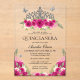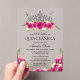 Elegant Glam Pink Floral Silver Tiara Quinceanera Acrylic Invitations