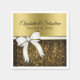 These beautiful wedding napkins features a design of a white & gold ribbon and bow separating gold faux foil on the top from shimmering gold bokeh sparkles on the bottom. The text contains the couple's names and wedding date. Great way to make your reception fancier and more beautiful.