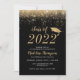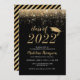 Elegant Glitter Black Gold Hat Graduation Party Invitation