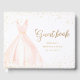 Elegant Quinceanera guest book feature watercolor blush pink dress with sparkle faux gold glitter guest book script, great for sweet 15 birthday party.