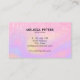 Elegant Glitter Holographic Script Makeup Artist Business Card. A simple and trendy business card design template, personalise with your business details for a minimal unique contact card. Features script signature font and modern design layout.