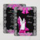 Elegant Glitter Hot Pink Stiletto Fabulous Birthday Party, Hot Pink High Heel Shoe, Black and Silver White Lace. Customise with your own details and age. Template for Sweet 16, 16th, Quinceanera 15th, 18th, 20th, 21st, 30th, 40th, 50th, 60th, 70th, 80th, 90, 100th, Fabulous product for Women, Girls, Zizzago created this design PLEASE NOTE all flat images! They Do NOT have real Glitter, Diamonds Jewels or real Bows!!