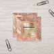 A modern, trendy and stunning combination of two different backgrounds in a soft peach color which appear to sparkle and shine. The one background is a stunning faux glitter and the other a brushed sequin and faux foil. A golden square rests on top of them that has your monogram, name and occupation on it and the back has the same design with a large golden inlay on which your business particulars appear. Customize the templates to suit your company.