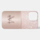 Indulge in opulent luxury with this elegant glittery rose gold metal glam monogram iPhone 13 Pro Max case. This exquisite accessory is designed to impress, featuring a captivating rose gold finish infused with dazzling glitter accents. Make it uniquely yours by adding your monogram, showcasing your personal style and sophistication. Choose unmatched refinement and make a bold fashion statement with this glamourous and personalised case.