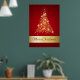 Modern, elegant and festive Christmas illustration featuring a Christmas tree made of shiny stars on a red background with snowflakes and a golden border.