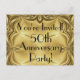Elegant "You're Invited! 50th Anniversary Party" is written in stylish black text on the front of this popular decorative gold vintage look invitation postcard. Easy to personalise with all the info that is needed on the back or just delete the sample text to hand write later. Or change the front text for another special occasion, like other anniversaries, weddings, retirements, or a Save The Date birthday invitation. Elegant and classy, rich-looking, yet affordabe, postcards with a stunning gold backdrop design that really stands out in style for your invited guests!