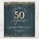 Lovely faux gold glitter confetti highlights on the top and bottom border. All text is adjustable and easy to change for your own party needs. Great elegant 50th birthday template design. blue wood textured background.