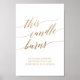 This elegant gold 6x9" this candle burns sign is perfect for a simple wedding. The neutral design features a minimalist poster decorated with romantic and whimsical faux gold foil typography.