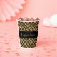 Paper party cups with a dramatic and elegant pattern features Art Deco style geometric fans on black background with customisable centre text band