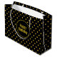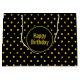 Elegant gold confetti on black Birthday Gift Bag. Text can be personalised.