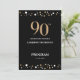 Elegant Gold and Black Confetti 90th birthday Programme